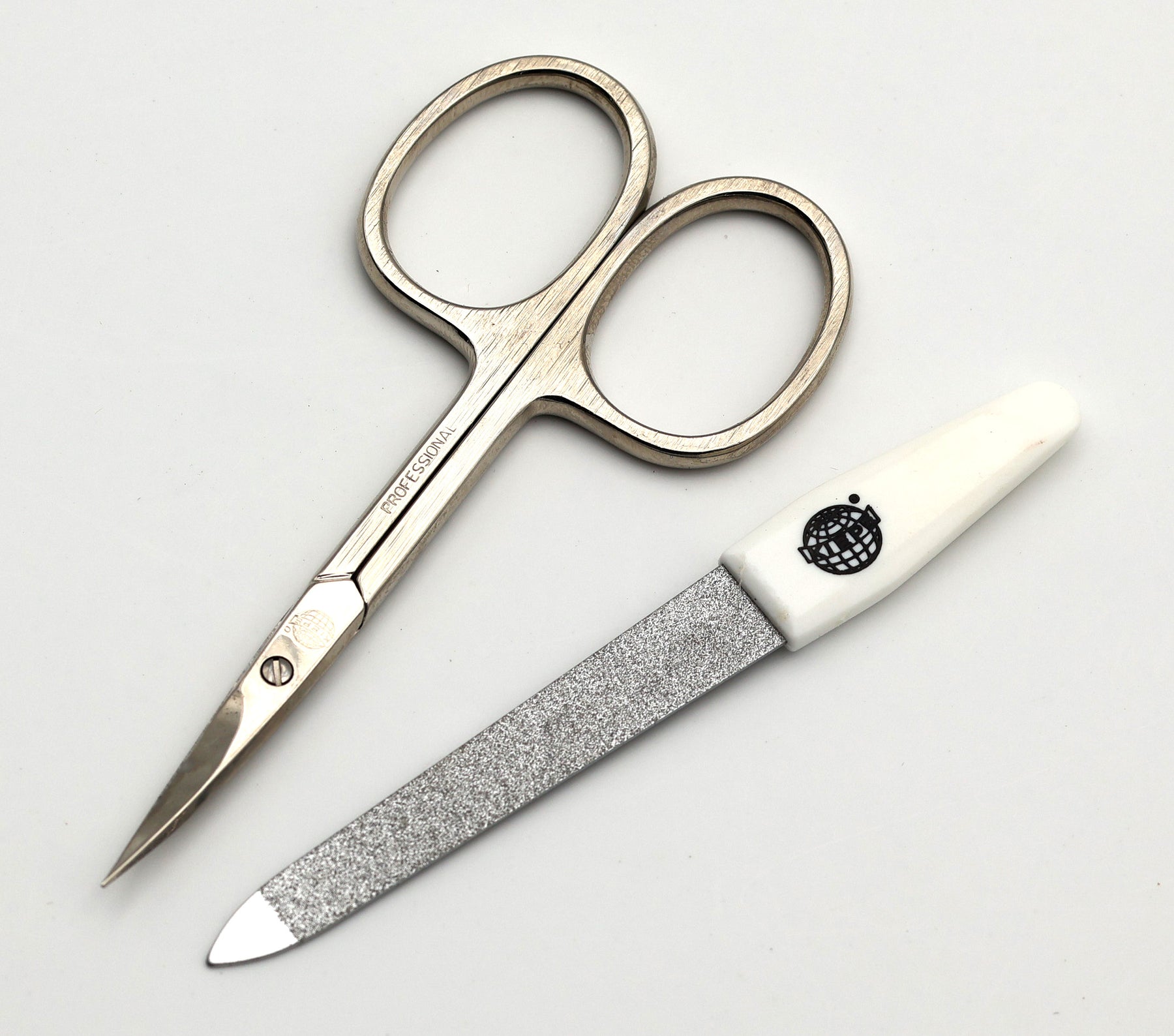 KIEPE manikiūro rinkinys – odinis dėklas su nikeliuotais įrankiais