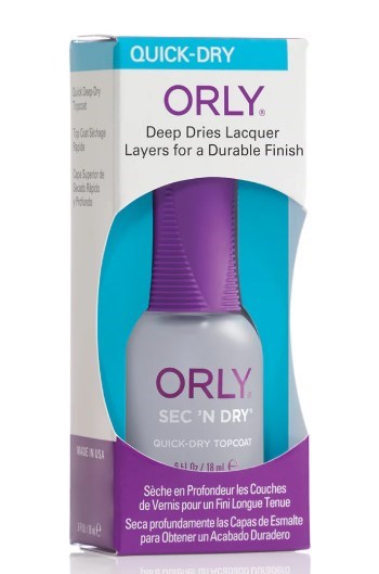 Orly Sec ’n Dry Greitai Džiūstantis Top Coat – profesionali greito džiūvimo viršutinė danga, skirta ženkliai sutrumpinti nagų lako džiūvimo laiką ir suteikti intensyvų blizgesį.