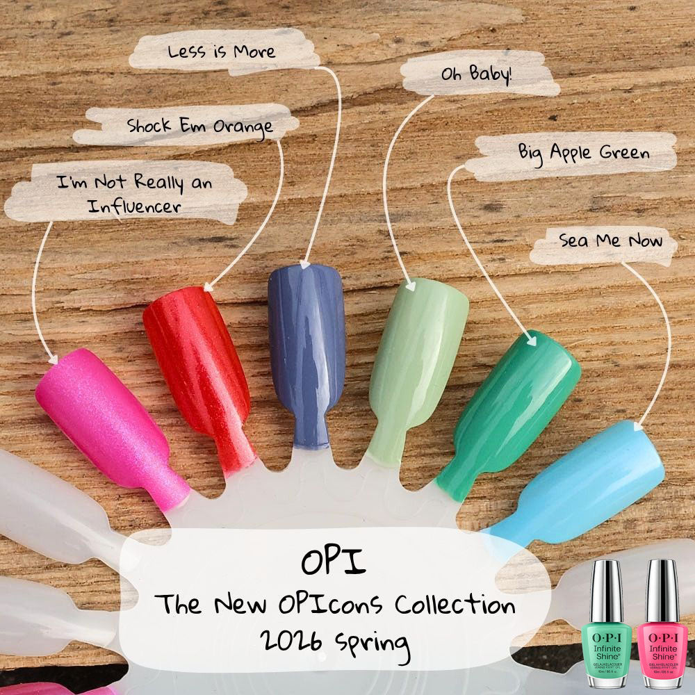 OPI pristato OPIcons Spring 2026 nagų lakų kolekciją – pavasario sezono kolekciją, įkvėptą ikoninių atspalvių ir spalvų, kurias pamėgo OPI gerbėjai visame pasaulyje. 2026 metų pavasario sezonas orientuotas į gaivias ir išraiškingas spalvas, derinančias modernų ryškumą su klasikiniais nagų lakų tonais, kurie daugelį metų formavo OPI kolekcijų identitetą. Spalvų paletėje dominuoja gyvybingi rožiniai atspalviai, žaismingi pasteliai, ryškesni raudoni tonai ir gaivios šaltos spalvos, skirtos pavasariškai ir šiuolaikiškai manikiūro išvaizdai.
